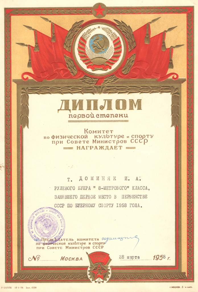 Доминяк И.А. чемпион СССР 1958 года на буере