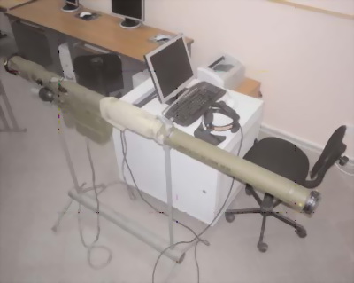 2. Имитатор боевых средств ПЗРК представляет собой габаритно-весовой макет ПЗРК. В нём размещён датчик пространственной ориентации, который определяет и передаёт в компьютер направление линии визирования ГСН. Все органы управления (ручка рычага накола НИП, кнопка «ВДОГОН», кнопка «СЕЛЕКТОР», пусковой крючок) через аналого-цифровой преобразователь передают в компьютер АПК своё состояние.