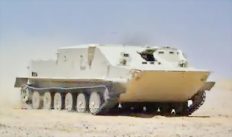 Снаружи к боковым стенкам корпуса крепятся экраны из лёгких сплавов, которые закрывают верхние ветви гусениц. При плавании они создают так называемый гидродинамический туннель, который играет важную роль в формировании движущей силы на воде.
