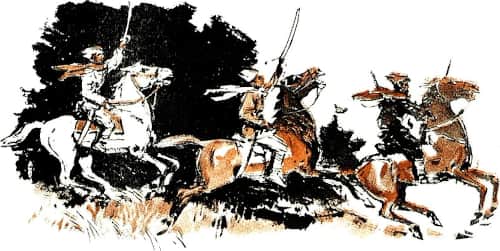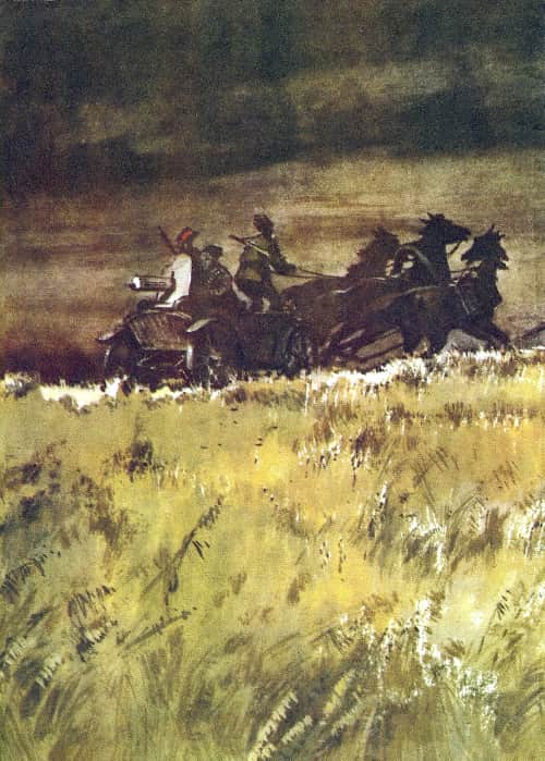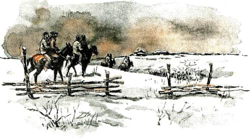 Выехав в степь, всадники подхватили пеших товарищей, пришпорили коней и понеслись по заснеженной равнине.
