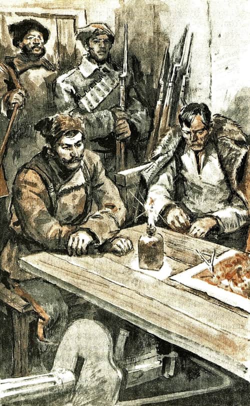 – Не спи, дурак! – И кузнец, оглушив часового, кулачищем, забрал у него винтовку.