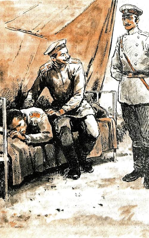 Командир поспешил за врачом. Врач пришёл тотчас же и осмотрел коня. Он отвёз Казбека в госпиталь.
