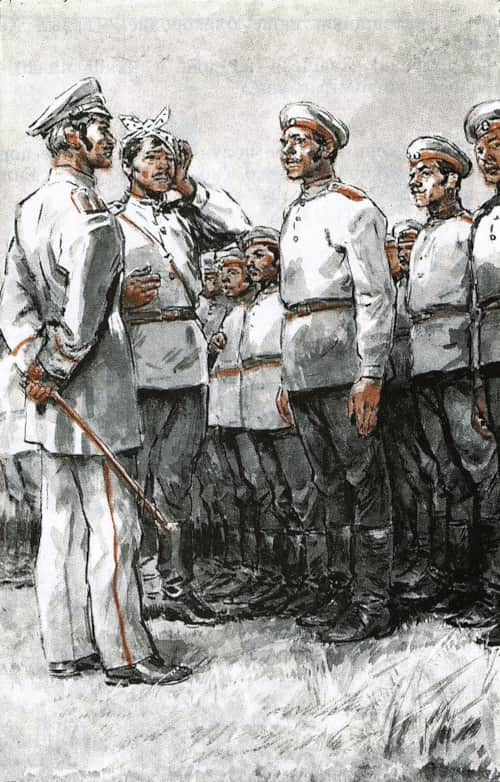 – Два шага назад! Ать-два! Ткаченко! Два шага вперёд! Кто ударил вахмистра? Отвечай!