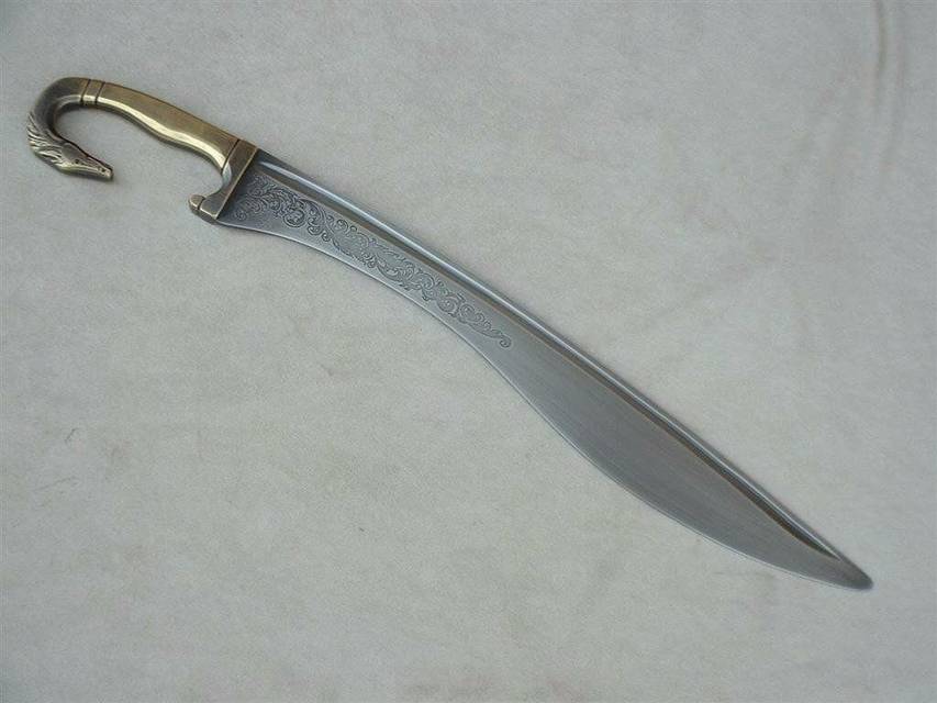[2] Испанской махайрой, а точнее – machaera Hispana, то есть «испанской саблей», римляне называли меч, который сейчас известен нам, как фальката. В музеях хранятся фалькаты III и IV веков до н.э., но, по мнению историков, испанцы и римляне вдохновлялись древнегреческими кописами. А древние греки, в свою очередь, переняли идею у персов не позднее, чем в VI веке до н.э.