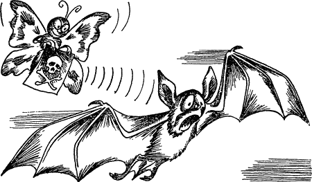 Настигая такую бабочку, летучая мышь метрах в двух от нее круто меняет направление и удаляется прочь. То же происходит, если в момент приближения летучей мыши к насекомому, не издающему ультразвуки, воспроизвести записанные на магнитофонную ленту «щелчки» тех бабочек, у которых такая способность есть: летучая мышь тоже разворачивается и улетает.