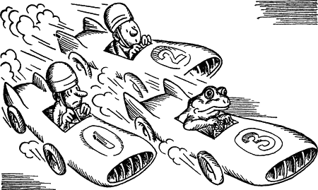 В арсенале средств оповещения, который вмещает только глаз лягушки, действуют и другие сверхчувствительные оптические структуры, способные молниеносно определить скорость подвижного объекта, даже если он приближается или удаляется прямо по сагитальной линии, то есть в направлении к глазу или от него. С такой точностью, как лягушка, никто из людей это делать не умеет. Правда, мозг самых опытных и способных (особый дар!) шоферов в момент обгона автоматически совершает нечто подобное. А глаз лягушки безошибочно оценивает не только скорость, направление, характер движения (поступательное, беспорядочное, колебательное) всех попавших в поле зрения объектов, но и степень их ускорения.