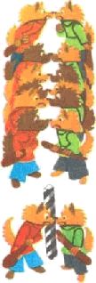 «Если стаи встречались на границе, разделявшей их территории, где их права были равны, то ни та, ни другая сторона не кидалась в бой. Самцы, особенно вожаки, рычали друг на друга… Напряжение, которое испытывали сильно возбужденные, но вынужденные сдерживаться вожаки, находило выход в действиях, бывших для нас постоянным источником развлечении из-за сходства с человеческими поступками в подобных же обстоятельствах – они срывали раздражение на членах своей стаи, и, если поблизости от вожака оказывалась собака, занимавшая на иерархической лестнице низшее положение, он свирепо рычал на нее или задавал ей жестокую трепку» (Нико Тинберген).