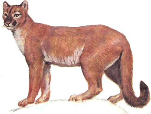Флоридская пума.Жизненное пространство ни одной кошки не раскинуто так далеко вдоль по меридиану, как у пумы: от Южной Аляски до Магелланова пролива. Так было, во всяком случае, еще в начале нынешнего века. Теперь во многих местах пума истреблена полностью или почти полностью. В Канаде и в США уцелели пумы только на западе и кое-где во Флориде.