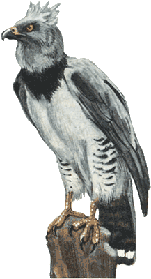 Орел-обезьяноед.Обезьяны – особое лакомство южноамериканских гарпий и других хохлатых тропических орлов. Это птицы особенные. Видом свирепые и страшные. Мощью когтей, силой мышц, пожалуй, превзойдут всех пернатых хищников. Они тяжелее беркутов и многих орланов, но не камчатского. Попадались полупудовые гарпии. Они таскают из деревень поросят и собак. Они душат ленивцев, обезьян, носух, агути… Их полет в гуще леса отмечают испуганные крики ревунов, капуцинов, попугаев. Отважно нападая, гарпии даже человека гонят от гнезда.