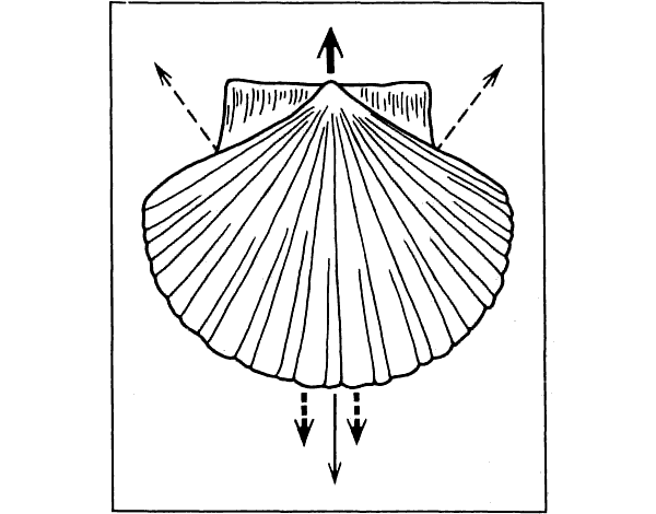 Схема, показывающая реактивный способ передвижения гребешка