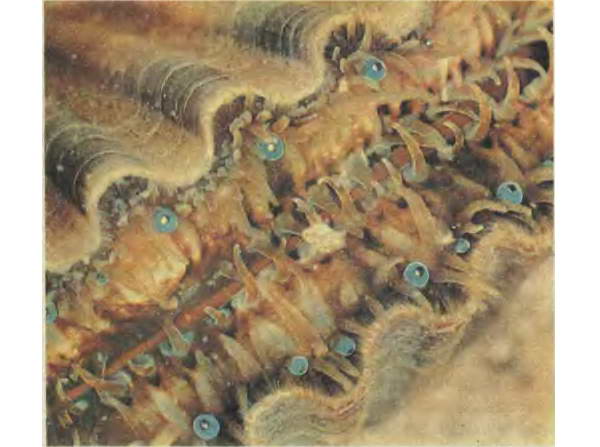 Тридцать два голубых глазка окаймляют края его раковины. По основному устройству они очень похожи на глаза человека