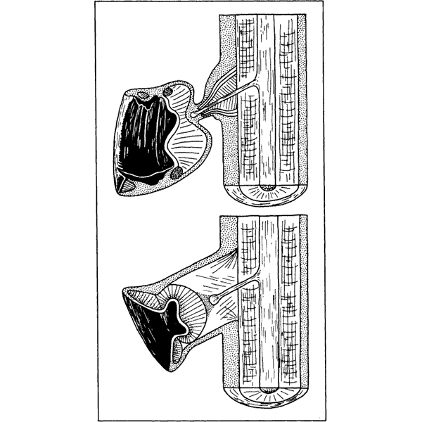 Присоска осьминога (вверху) и кальмара (внизу). У первой в отличие от второй широкое основание и нет снабженного зубцами рогового кольца
