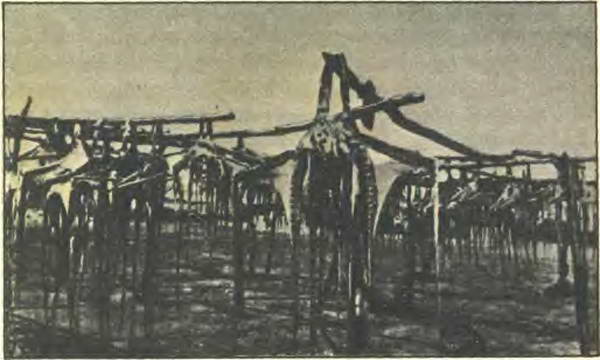 Ловцы осьминогов у берегов Алжира и Туниса поступают и иначе. Из толстых пальмовых листьев устраивают на мелководьях узкие и запутанные лабиринты. Сооружения милями тянутся вдоль берега. Во время отлива осьминоги находят в лужах внутри лабиринта удобные для себя убежища. Тут их без труда и собирают, связывают в пачки по пятьдесят штук. Артель из четырех человек добывает ежедневно восемь – десять таких пачек, то есть 400–500 осьминогов.