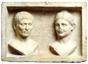 Римский мраморный надгробный рельеф с двумя портретными бюстами