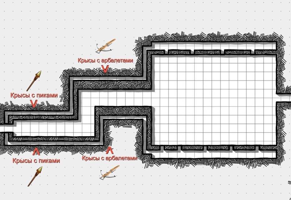 Далее подвёл к ним небольшие коридорчики от участков, где крысы вырыли себе норы. В этих коридорчиках, будут располагаться крысы зомби, вооружённые пиками и арбалетами. Так как они мертвы, то их не нужно кормить, и можно оставить в этих участках хоть навечно.