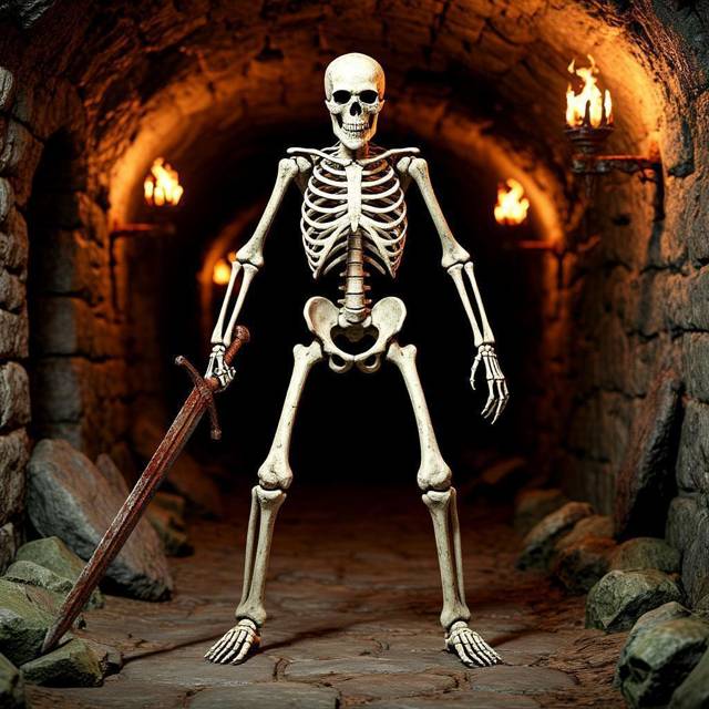 В следующее мгновение из пальцев вырвались голубые вперемешку с черным потоки маны и направились к костям, затем те задребезжали, и скелет ожил, после чего медленно поднялся.