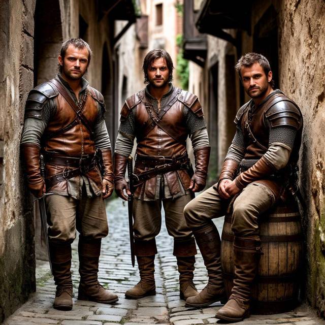 Но как только завернул за угол, встретился там с тремя мужчинами из числа наёмников, выглядящими и настроенными довольно воинственно.