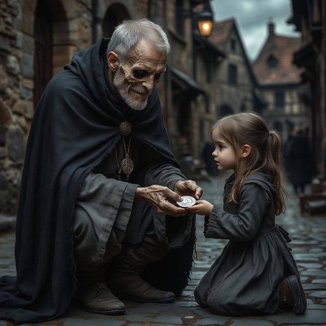 Девочка удивлённо посмотрела на блестящий кружок, потом на мать, и, получив кивок, прошептала: «Спасибо, дядя!» – и они поспешили прочь, счастливые и ничего не подозревающие.