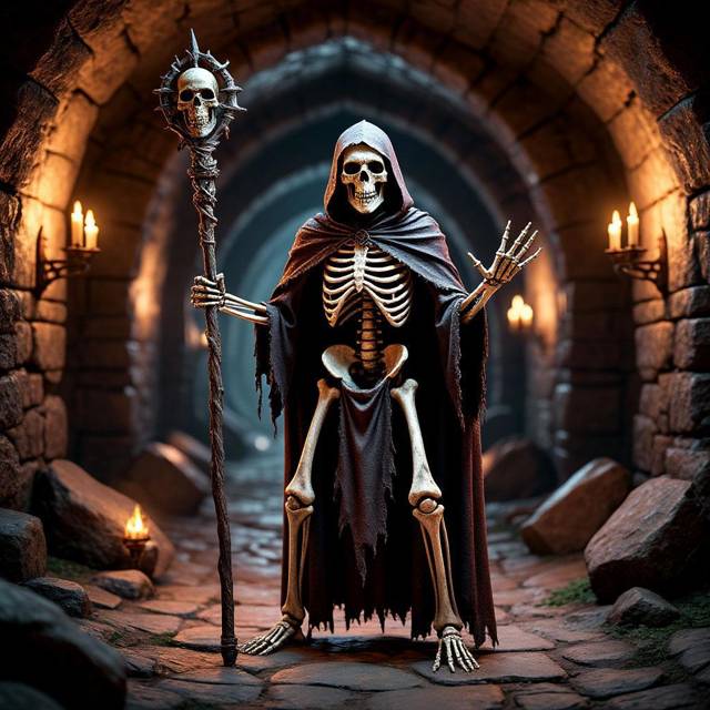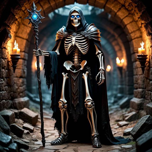 Вершина развития для обычного скелета-мага. Владеет небольшим арсеналом из шести серьёзных проклятий, также получает способность создавать щит из тёмной энергии.
