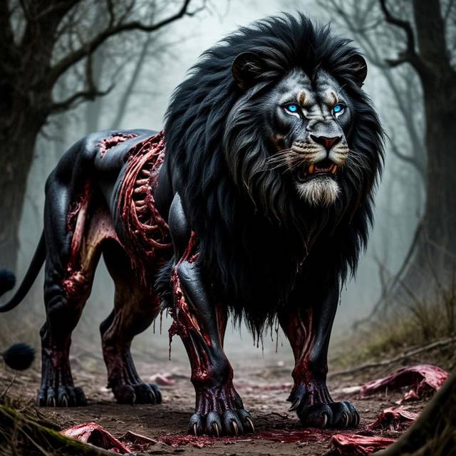 Когда негативная энергия растворилась полностью, перед Сатой стоял огромный лев, шкура которого была прогнившей и местами облезлой, сквозь рваные участки проступали чёрные кости. Но самым впечатляющим была его грива – она казалась сплетённой из самой тени, живой и шевелящейся, источающей морозный пар.