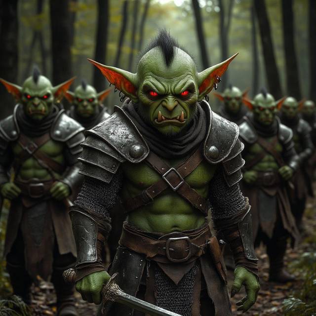 Оказалось, что среди ветвей и листьев всё-таки прятались невидимые существа. Они выглядели прозрачными, но вдруг их маскировка исчезла, и я увидел группу гоблинов в доспехах и с красными глазами. Они смотрели на меня своими злыми рожами, обнажая ножи и готовясь напасть.