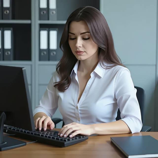 Она сидела за своим столом, что-то увлеченно печатая, и ее пышные, прямо-таки эпические формы, как всегда, были мастерски подчеркнуты облегающей блузкой.