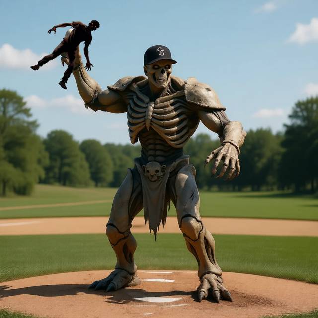 Она на гмгновение замерла, затем кивнула и сразу же следом голем медленно наклонился, его огромная костяная рука схватила первого зомби, словно ребёнок игрушку. Тот даже не пискнул, и в следующее мгновение этот костяной гигант, сделав широкий замах, швырнул тушку в сторону вражеских рядов.