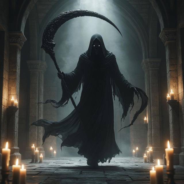 Тени за спинами воинов сгустились, заколебались, а затем из них выплыли они. Не просто призраки, а существа из чистой тьмы и жажды небытия. Их формы были расплывчаты, но длинные, холодные косы в их руках отливали тусклым, воронёным металлом.