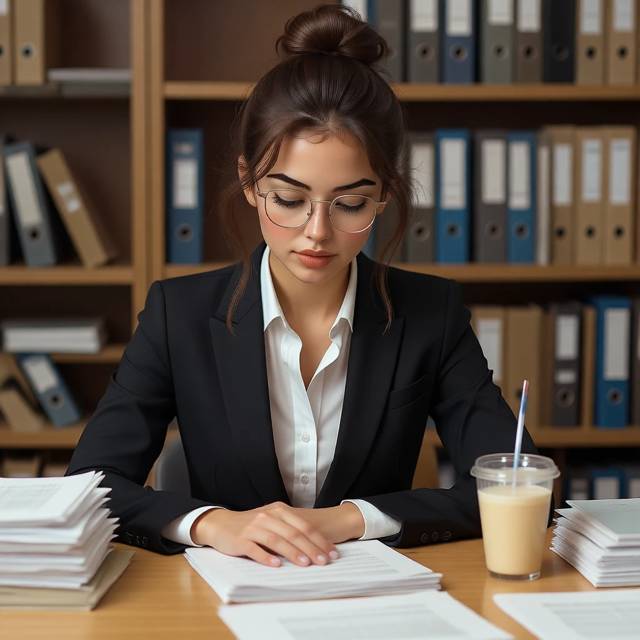 Она была в своём обычном строгом, но оттого не менее притягательном виде: тёмный, идеально сидящий пиджак, под которым угадывалась светлая блузка, и юбка-карандаш. Её тёмные волосы были убраны в тот самый безупречный тугой пучок, а взгляд за очками оставался собранным и внимательным, но сейчас в нём читалась тёплая искорка.