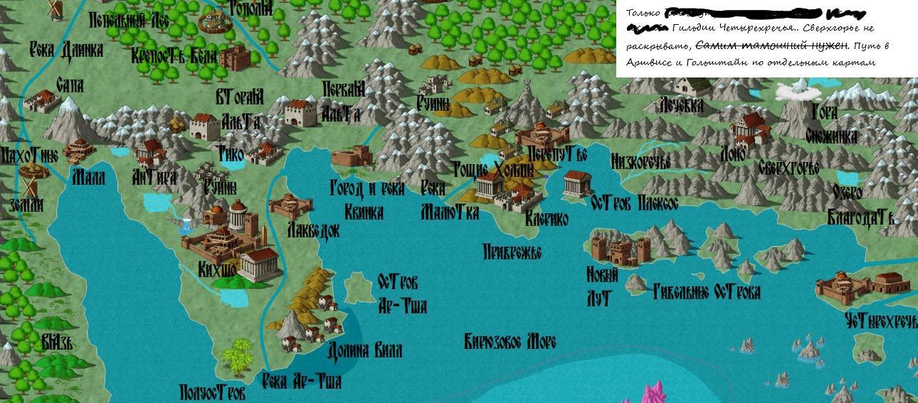 Карта Прибрежья и Центральной части континента, наши дни. Фрагмент. Изготовлена Гильдией торговцев города Четырехречье.