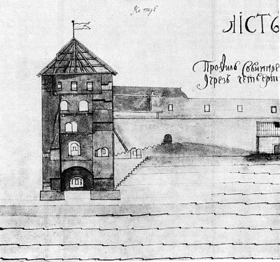 [Закрыть] и 1740 г. показана уже пунктиром (см. рис. 20). Три другие – Меньшикова (Княжая), укреплявшая северную стену крепости, Светличная на северо-западном углу «цитадели» и Мельничная на ее восточном углу – были сломаны «по ветхости» в 1817 г.[562]562