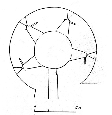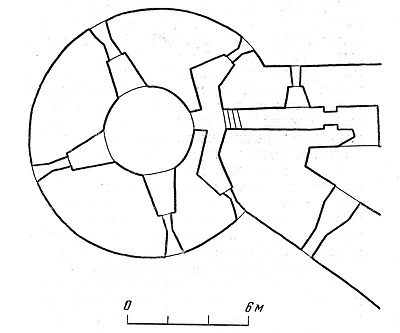 Рис. 12. План второго яруса угловой северо-западной башни крепости Копорье. (По В. А. Богусевичу)