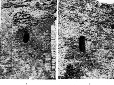 Рис. 18. Фрагменты крепости Копорье. а – дополнительный вход; б – бойница юго-восточной стены