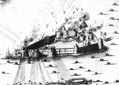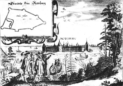 Рис. 19. Общий вид крепости Орехов. Гравюра А. Схонебека. 1703 г.