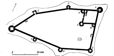 В плане Ореховская крепость имеет вид неправильного треугольника (рис. 20)[543]543