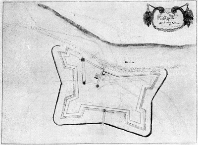 Однако и на шведской карте второй половины XVII в., и на плане Ямбургской крепости первой половины XVIII в. внутри земляных сооружений имеется еще маленький четырехугольник – небольшое укрепление в виде особого отделения. Такой же четырехугольник показан и на рукописной шведской карте 1689 г.[592]592