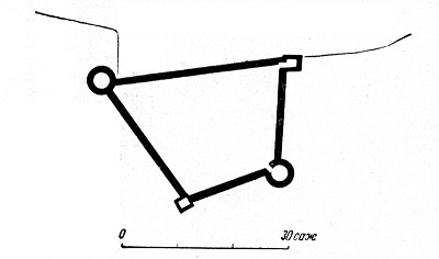 Рис. 37. План крепости Ям. (Выкопировка из чертежа, приведенного на рис. 36)