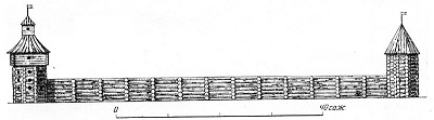 [Закрыть]; в 2 стены «до кровли» был сделан «город рубленой» в Опочке, стены и башни которого строились в 1654 г. взамен сгоревшего в 1648 г. острога[965]965