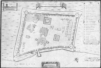 Отличие этой крепости от крепости предыдущих чертежей показывает, что здесь изображен уже не острог конца XVII в., а сменивший его «город» начала XVIII в. Однако этот «город» явно сохранил особенности старого острога; он также четырёхуголен, стоит на его месте и занимает центральное положение в общей планировке Колы.