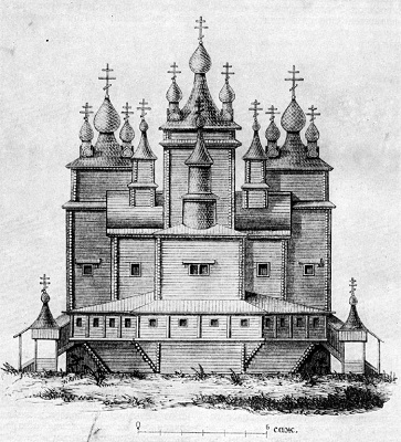 Воскресенский собор принадлежал к числу лучших и наиболее своеобразных памятников русского деревянного зодчества. Напоминавший знаменитую двадцатидвухглавую Преображенскую церковь 1714 г. в Кижском погосте[994]994