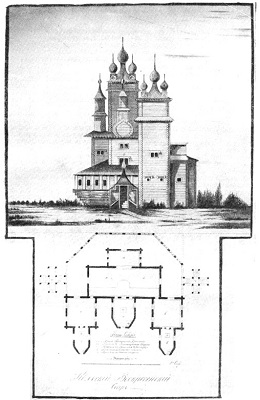 Мы воспроизводим здесь лишь одну из этих копий (рис. 23), а вместо двух других публикуем иллюминированный чертеж «Кольский Воскресенский собор (XVII в.)», принадлежащий архитектору П. Д. Барановскому[992]992