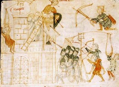 [Закрыть]. Обстрел через крепостную стену велся обыкновенно вслепую, поэтому он был мало эффективным и оказывал больше моральное воздействие. Подобным образом в город могли метаться также зажигательные снаряды, трупы животных и пр.