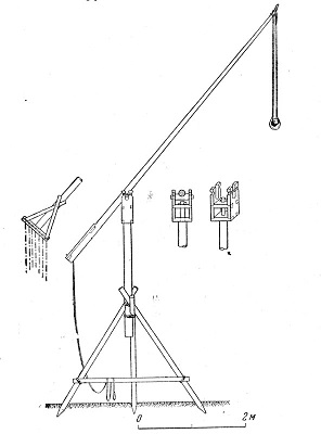 [Закрыть]. Н. Е. Бранденбург, предлагавший «метод сравнительного изучения конструкции машин у народов, имевших большое влияние на исторические судьбы нашего отечества», подразделял орудия на стрелометные – пружинные, торсионные (см. ниже) и машины с противовесом. С первым и последним типами исследователь связывал древнерусские орудия[198]198