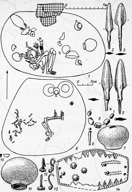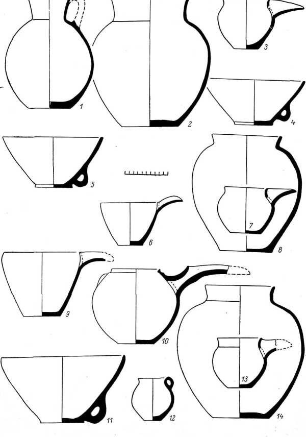 1,2 — мог. 56; 3—5 – мог. 64; в—8 – мог. 65; 9 – мог. 67; 10, 11 – мог. 76; 12, 13 – мог. 71; 14, 13 — мог. 74; 10 — мог. 79.