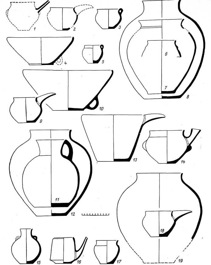 Табл. XIX. Могильник Сумбар I. Керамика.