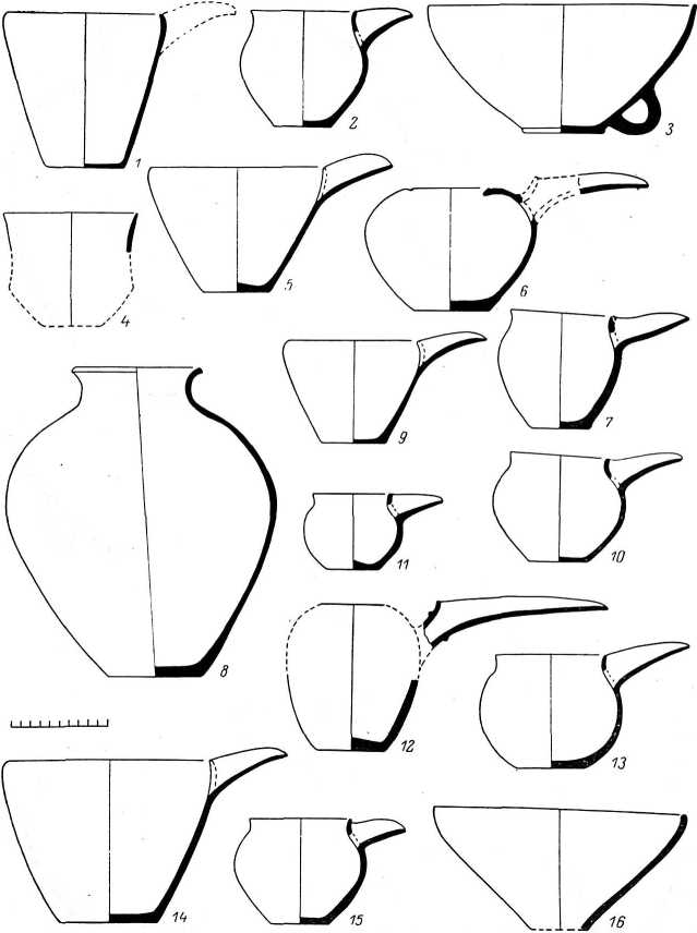 1 — мог. 24; 2 — мог, 27; 3, 4 — мог, 28; 5—8 — мог, 31; 9—11 — мог, 33; 12, 13 — мог. 34/35; 14—16 — мог. 38.