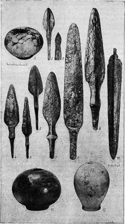 Рис. 6. Предметы вооружения (1—10) и престижности (11, 12).