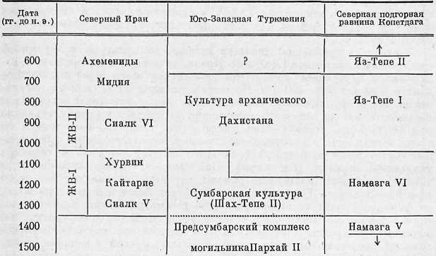 Синхронизация культур Северного Ирана и Туркмении (подгорной зоны и юго-запада)