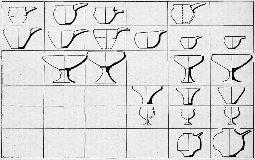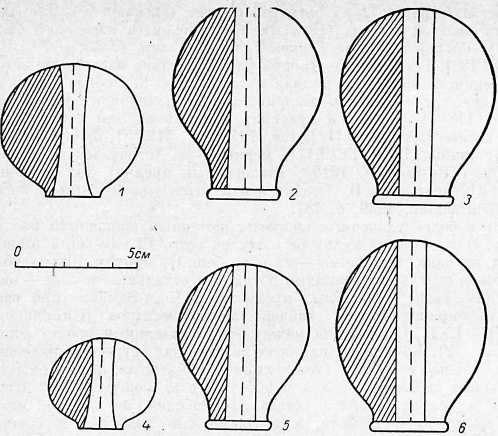 В связи с этим хочется отметить более отдаленные аналогии для сферических сосудов с двумя ручками: совершенно такие же сосуды (правда, светло-коричневые, а не серые) найдены в могильнике Барди-Бал (Луристан). Л. Ванденберг считает, что захоронения с ними следует датировать концом ЖВ-1. Кроме того, в том же могильнике в двух погребениях встречены сосуды со сливами, в одном – горшочек с открытым носиком и ручкой [Vanden Berghe, 1973].