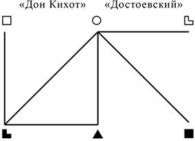 Творчество «Достоевского» в области, определяемой объектной интуицией, подвергает область самоутверждения «Дон Кихота» постоянной проверке на прочность: «контролер» полностью блокирует аспект организации чужого типа ИМ. В результате «Дон Кихот» начинает испытывать бессознательное чувство неуверенности.